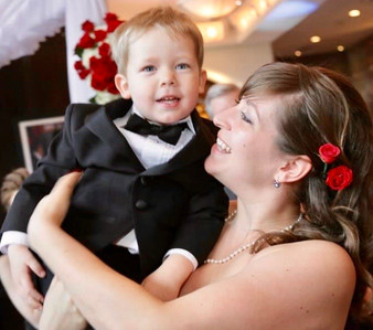 Clockwise from top left: With my dad and all of my sisters; with my mom; my heart's desire - a hora; and my other heart's desire - an adorable ring bearer.